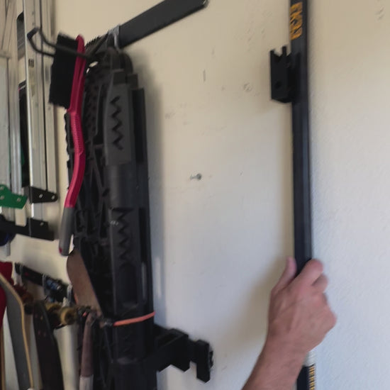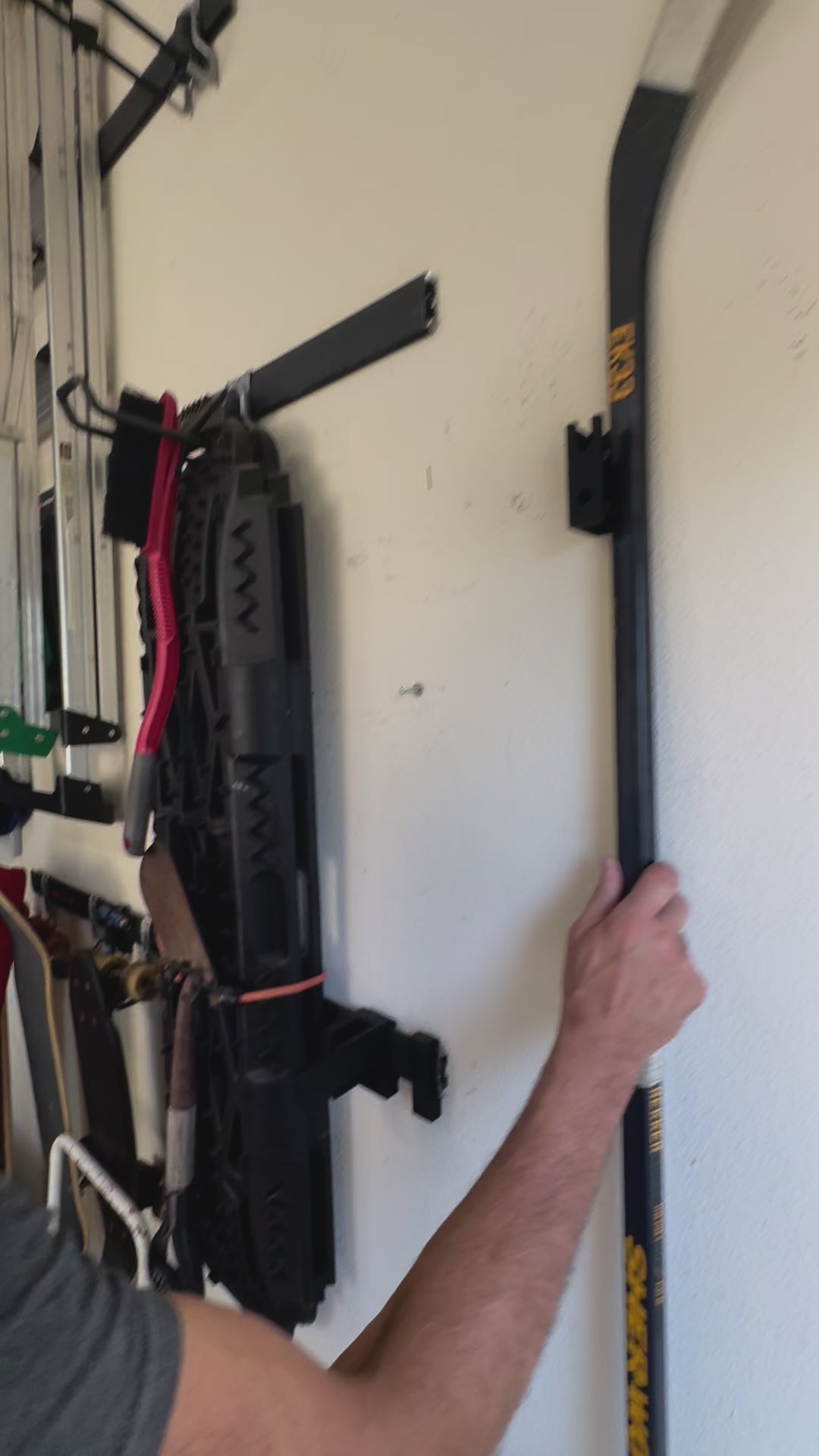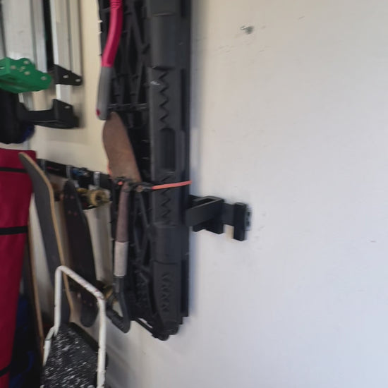 Quickly and easily store your hockey sticks with our mounted garage storage system.