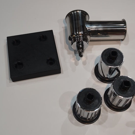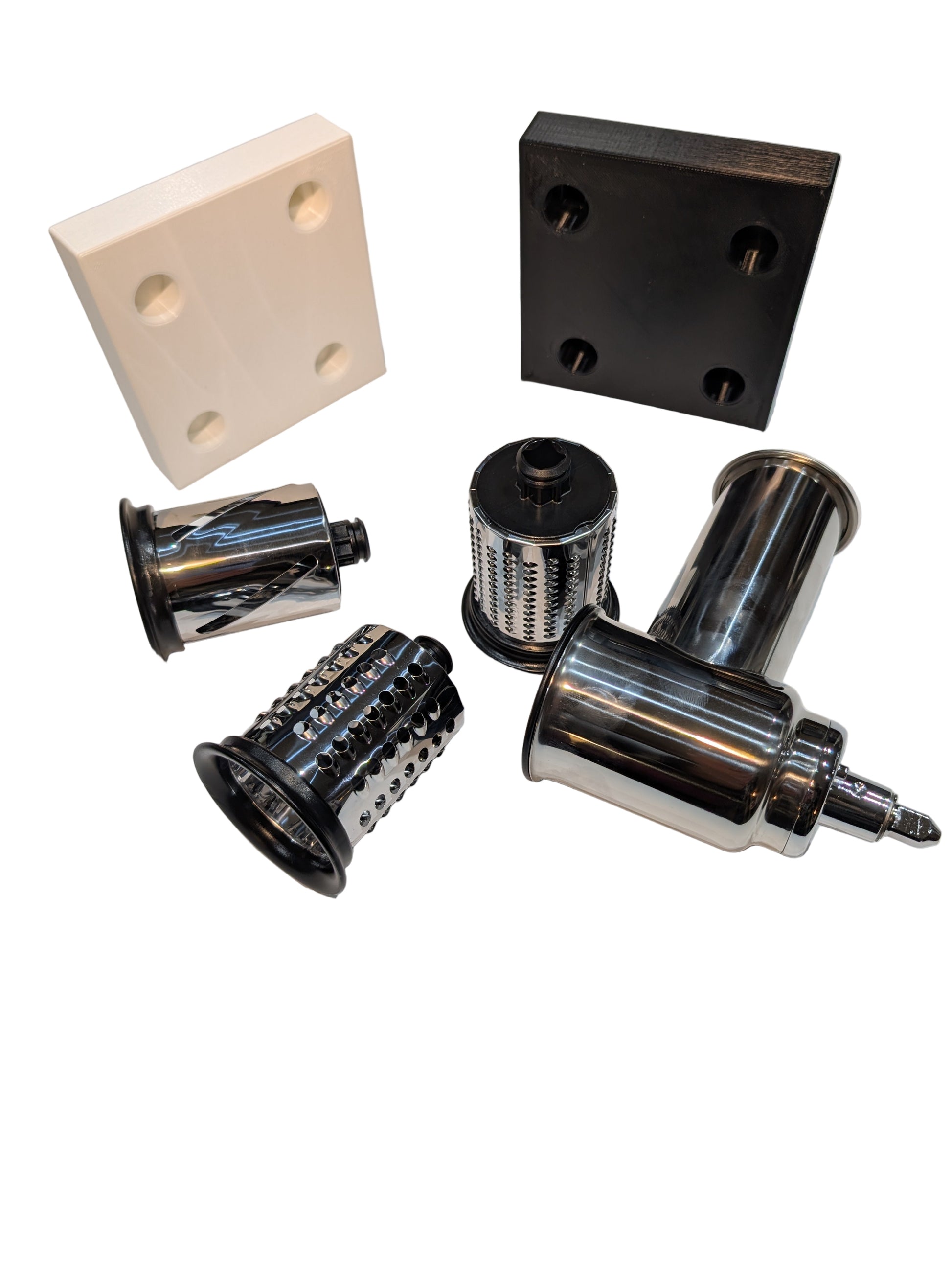 Keep your KitchenAid slicer/shredder attachments tidy and organized with this KitchenAid attachment storage caddy. Not only will it keep your attachments accessible and easy to find, but it's also attractive enough to keep on the counter with your stand mixer.